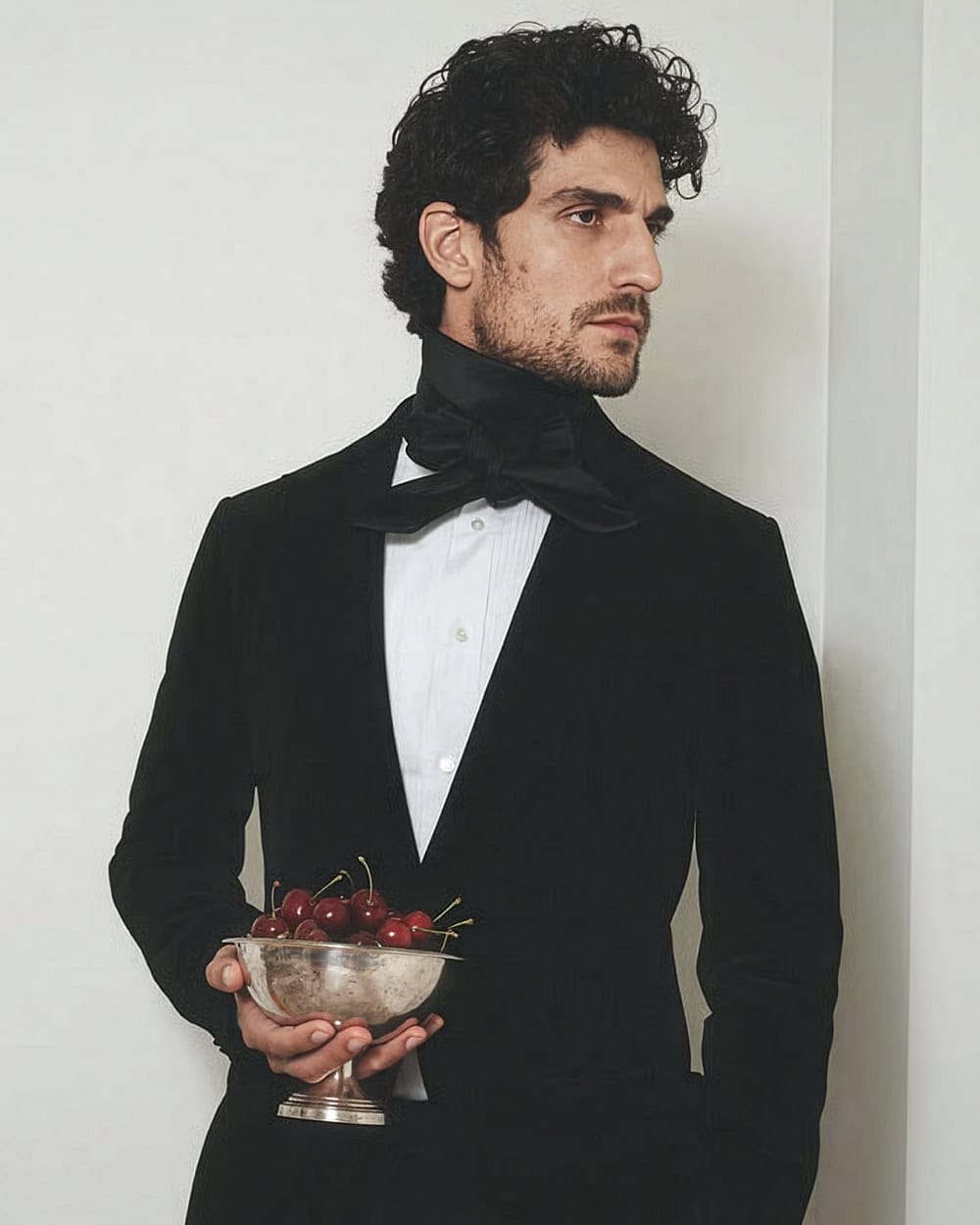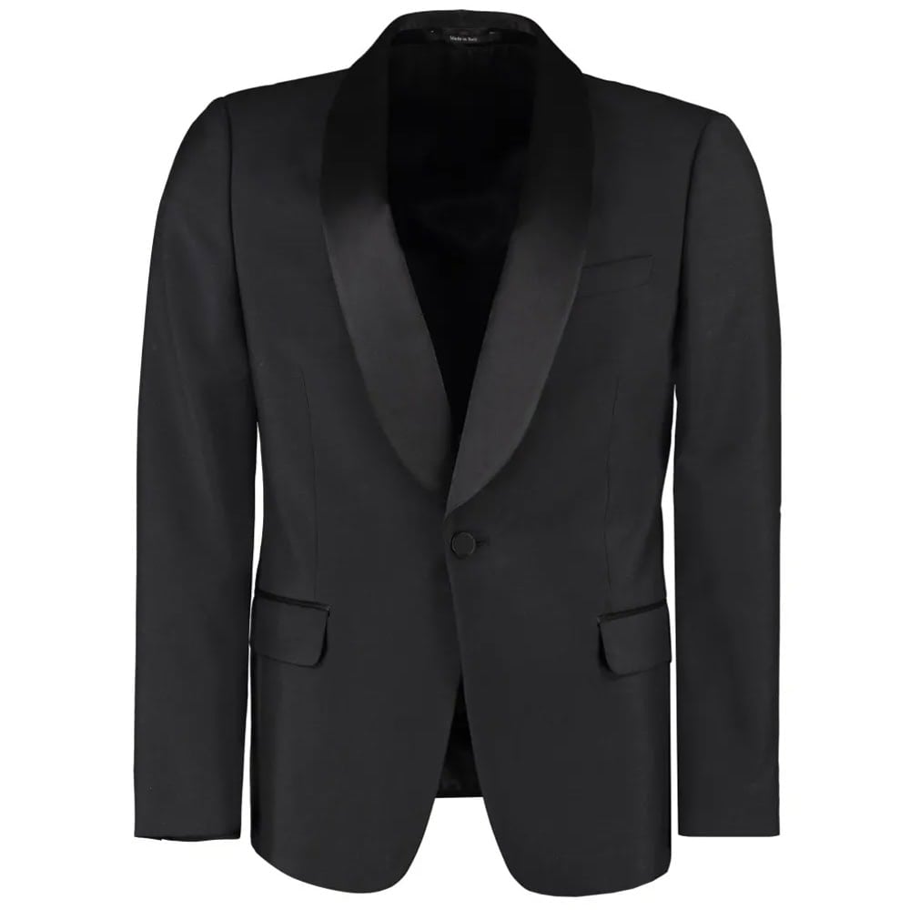 Ford built a reputation on sharp lines, precise cuts and cinematic glamour. Ford’s signature suits feature strong shoulders, a suppressed waist, and wide-peak lapels that recall 1970s tailoring.