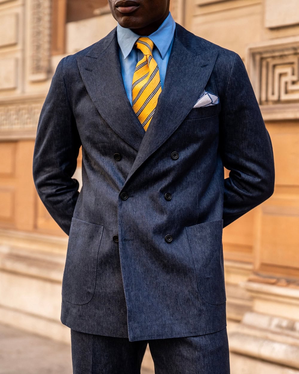 Look out for uniformity in patterns too. They should be matched so stripes run uninterrupted across pockets. None of this stuff is really apparent in photographs. That’s why it’s always best to try a suit in person. True quality presents itself in the way the material moves and in the tiny details that are only noticeable up close.