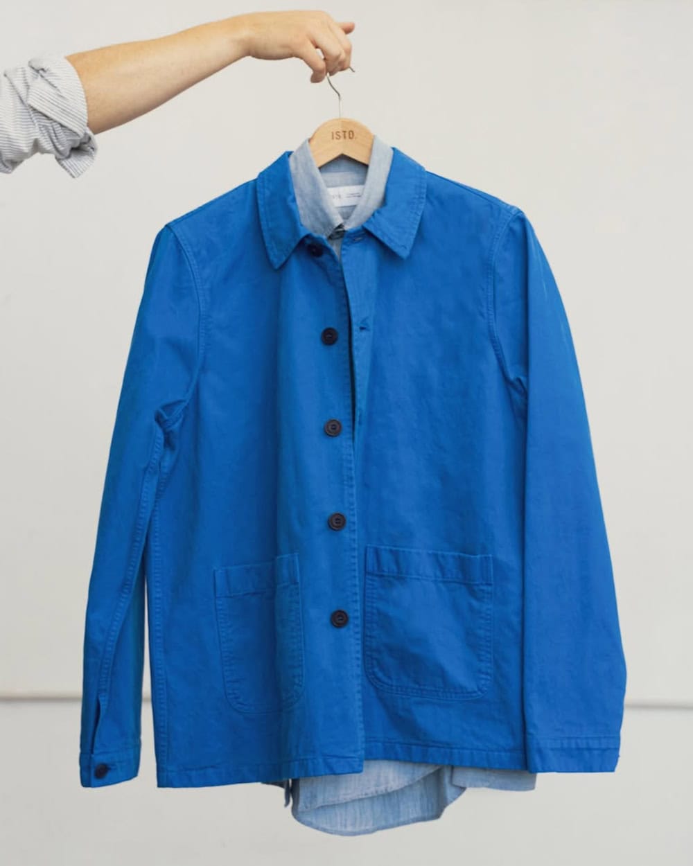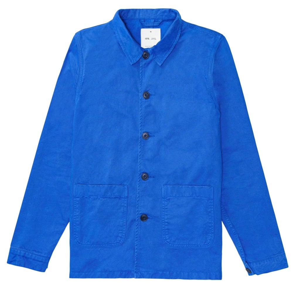 Knitwear, shirting or light outerwear would be our advice. A royal blue lambswool crew neck is ideal for layering, and a French workwear-style chore coat will always look great.