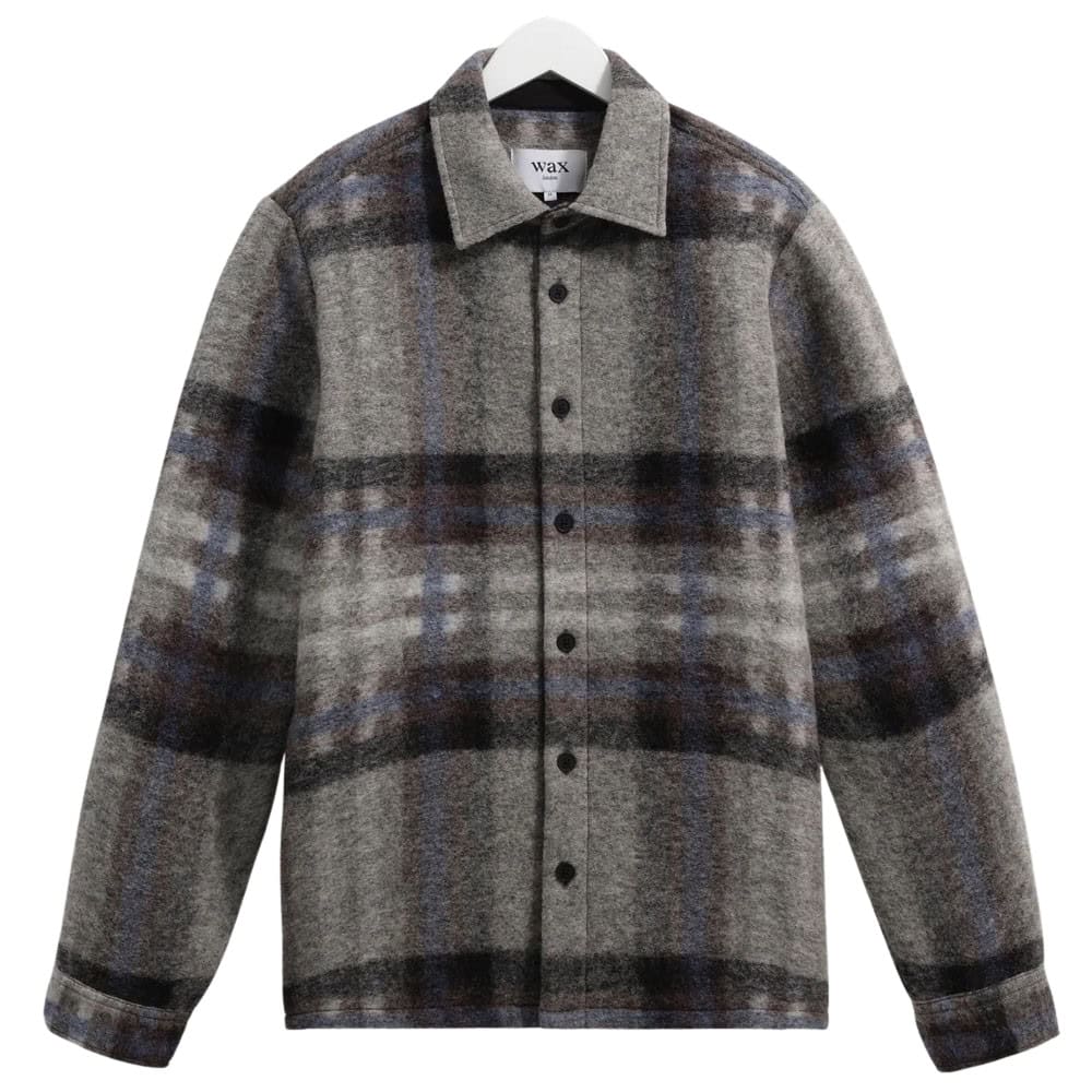 - Wax London Nolan – Grey And Blue Check Wool Overshirt