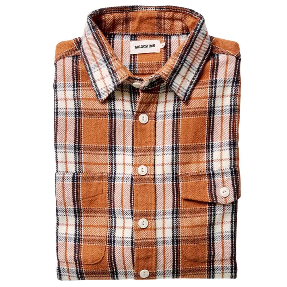 Brushed cotton offers an unbeatable combination of softness and warmth, making it a standout fabric choice for fall shirts. The material undergoes a process where the cotton is (you guessed it) brushed to raise its fibres, resulting in a luxuriously soft texture that feels great against the skin.
