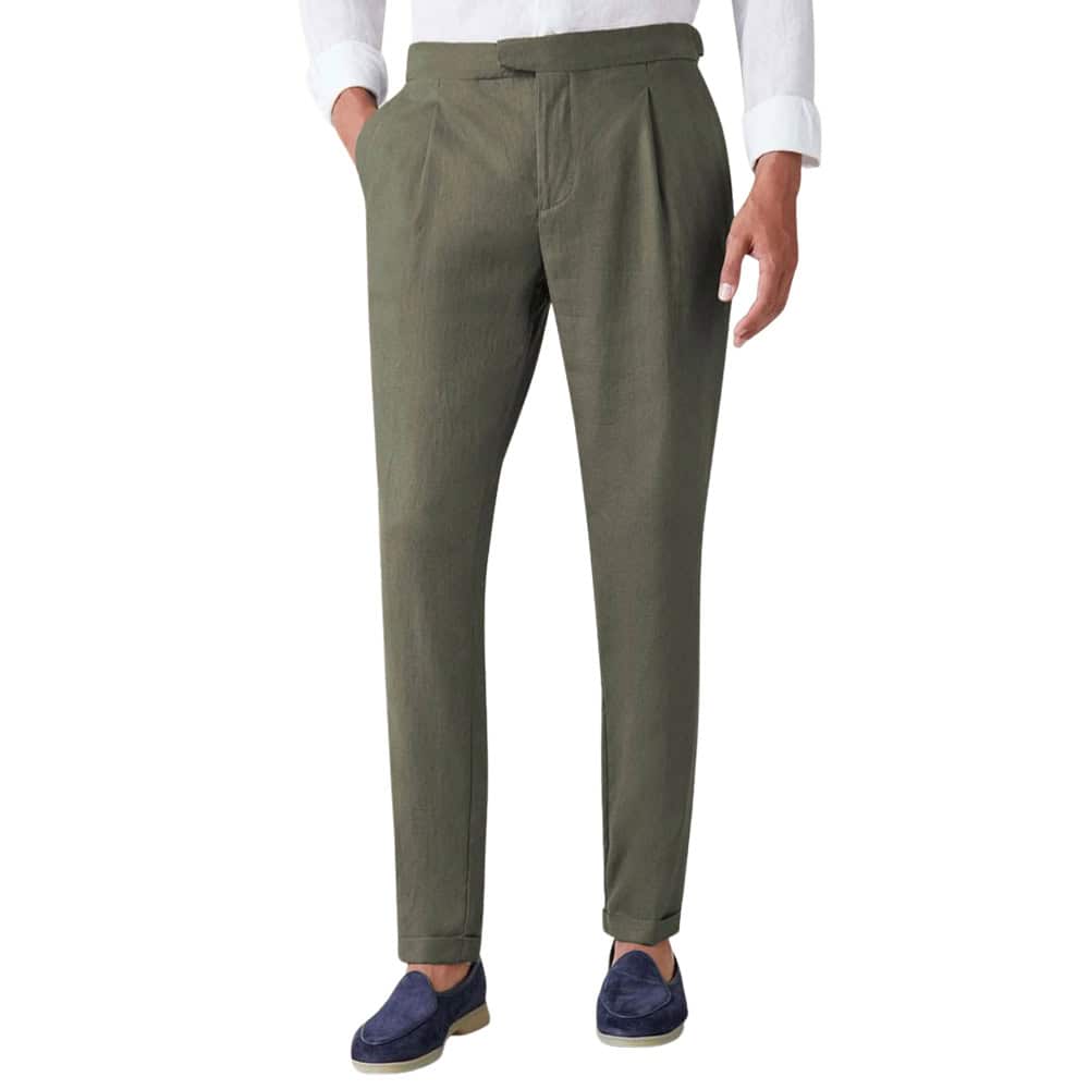 Suitsupply sits in a sweet spot within modern luxury tailoring, offering trousers that combine refined fabrics, clean lines and an unmistakably contemporary silhouette. Their focus on quality materials, thoughtful construction and sharp, reliable fits gives their trousers a polished, upscale feel without drifting into overly formal territory. Whether cut from soft wool, lightweight blends or elevated cottons, each pair is designed to drape elegantly and pair effortlessly with the rest of a well-curated wardrobe – making Suitsupply a compelling choice for men who want luxury-level refinement at a more accessible entry point.