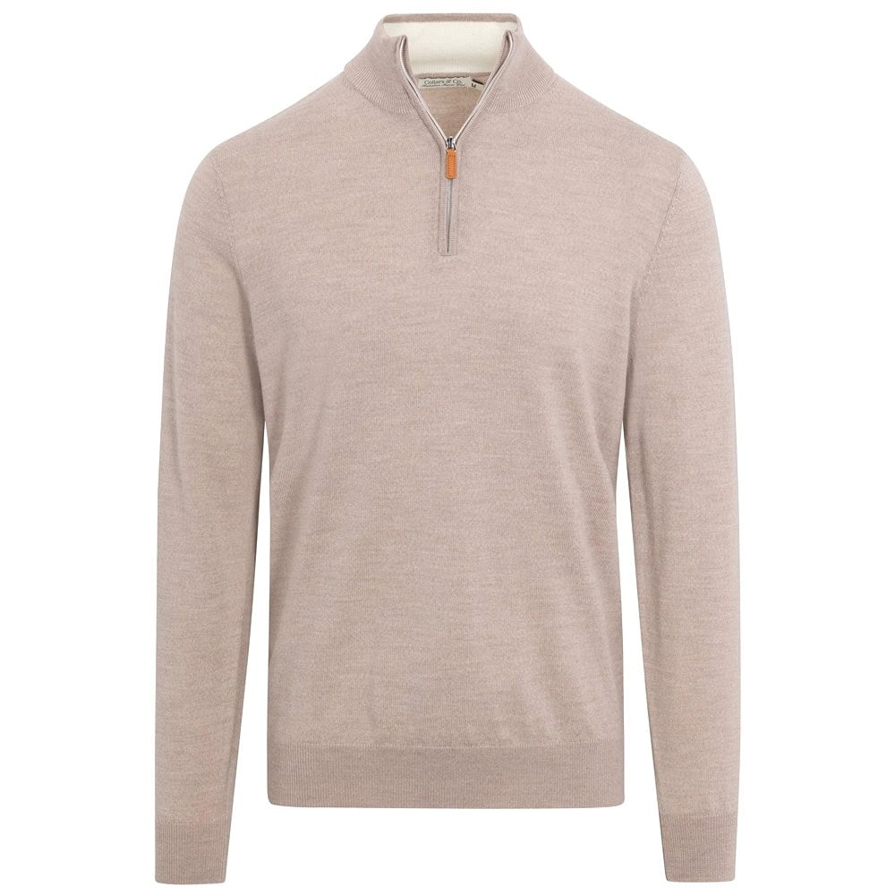- Collars & Co Oatmeal Cashmere Touch Australian Merino Quarter Zip Sweater