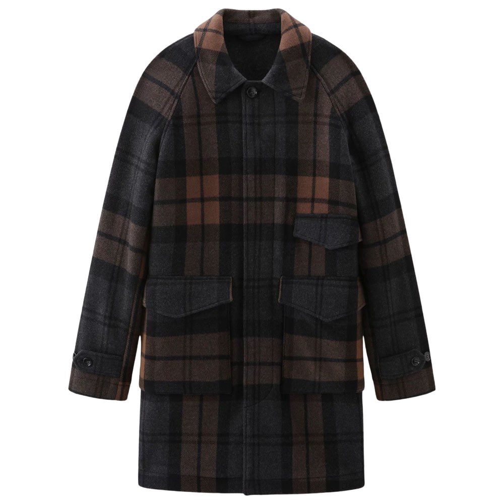 - Woolrich Upstate Recycled Melton Wool Check Coat Brown Macro Check