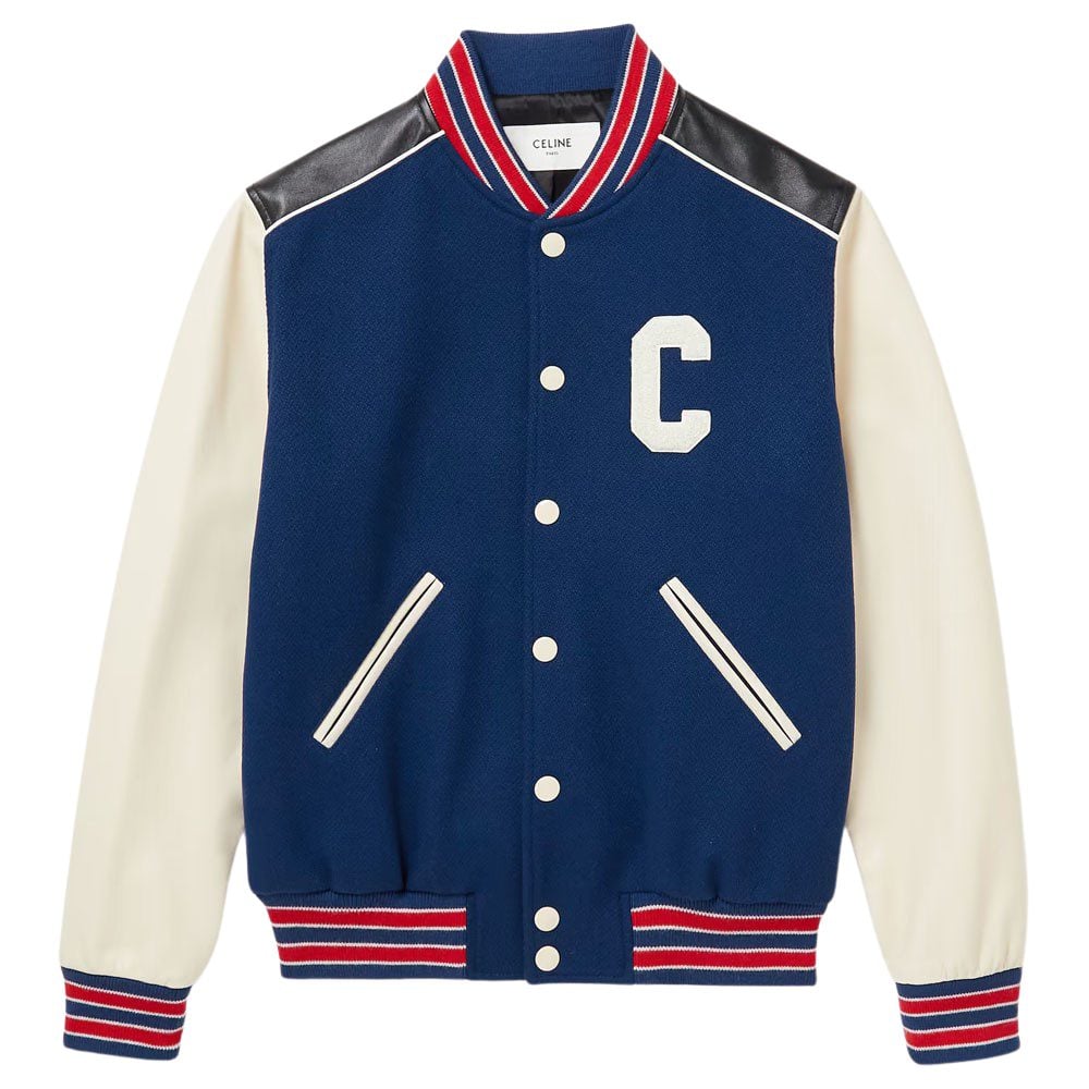 - CELINE HOMME Logo-Appliquéd Wool-Blend and Leather Varsity Jacket