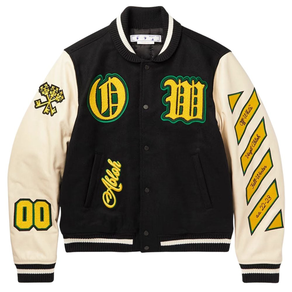 - Off-White Appliquéd Wool-Blend Felt Varsity Jacket