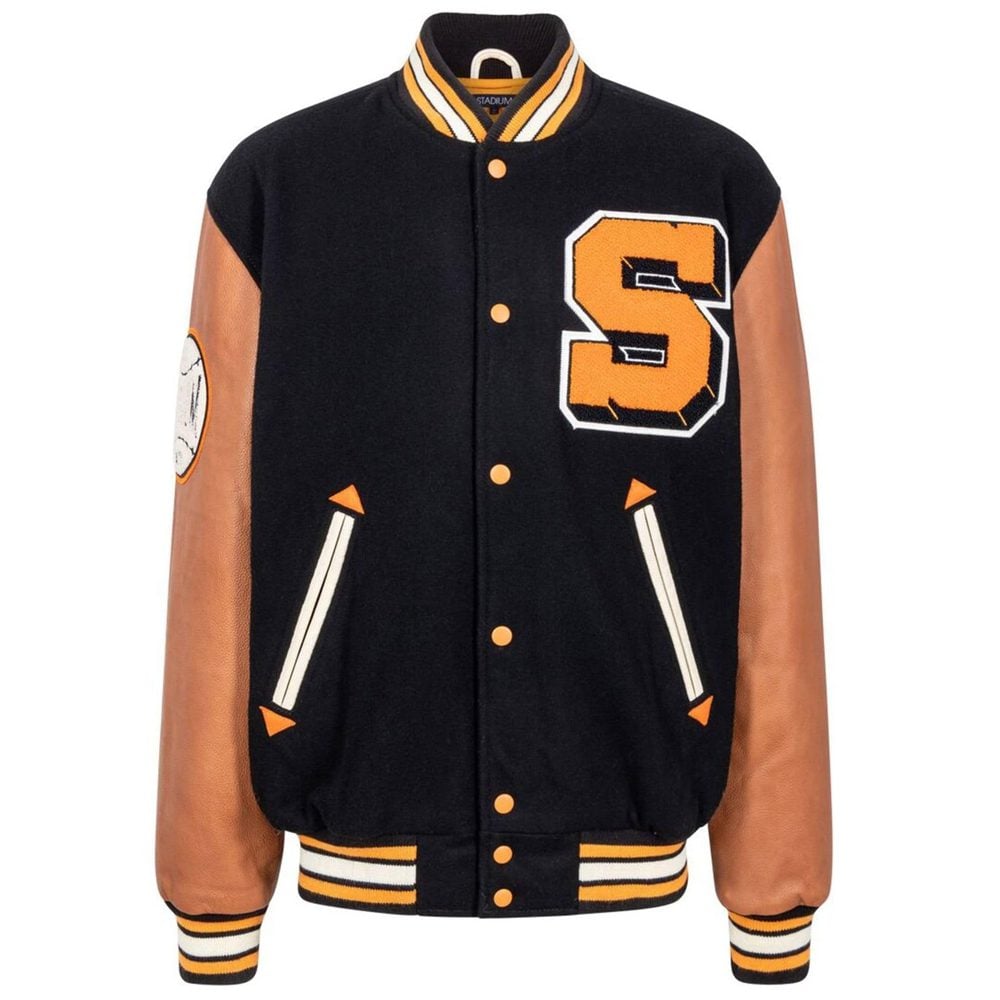 - STADIUM GOODS® Home Team Black/Orange/Brown Varsity Jacket