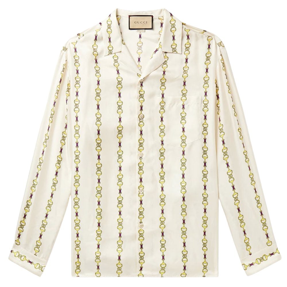 - Gucci Camp-Collar Printed Silk-Twill Shirt