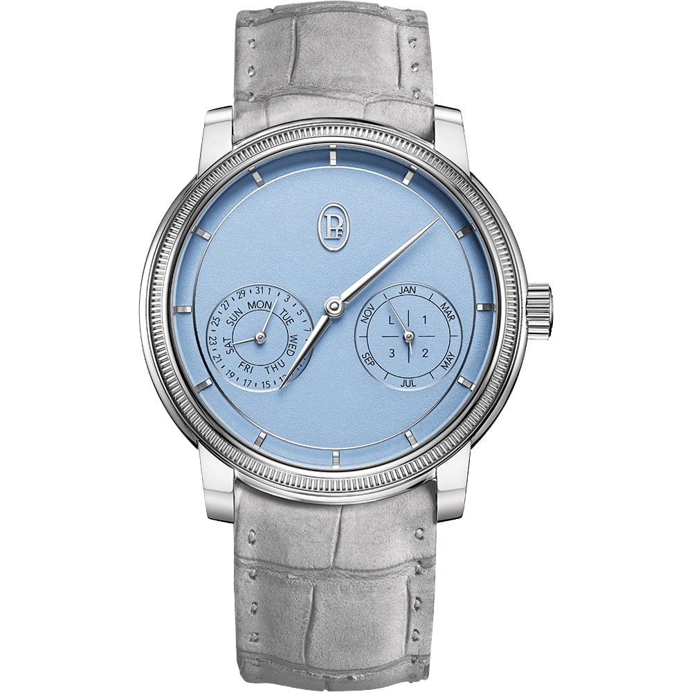 Since Guido Terreni took over as CEO in 2021, Parmigiani has gone from a brand that makes watches that are beautiful on the inside but a bit of a mess dialside to stone-cold classics. It’s all muted pastel palettes and striped-back dial furniture as this perpetual calendar shows.