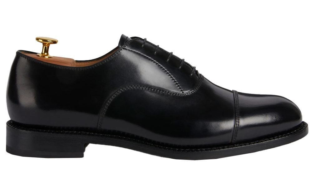 Patent leather Oxfords are the go-to when donning a tux, but for sheer versatility, we’d recommend going with plain black leather. This way, you can wear them with any old suit, and nobody except the staunchest traditional menswear purists is likely to bat an eye if you wear them to a black-tie event.