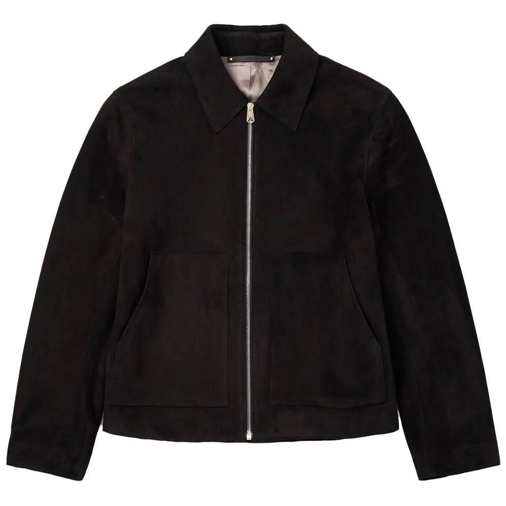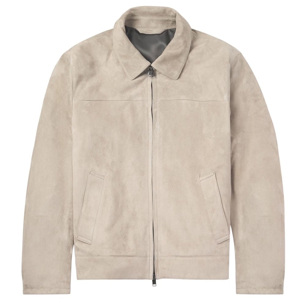 A suede blouson would be our preferred choice. It has a similar silhouette with its cropped body and classic collar, but the fabric is far more indulgent than denim and will pair more readily with smarter pieces like tailored pants and dress shoes.