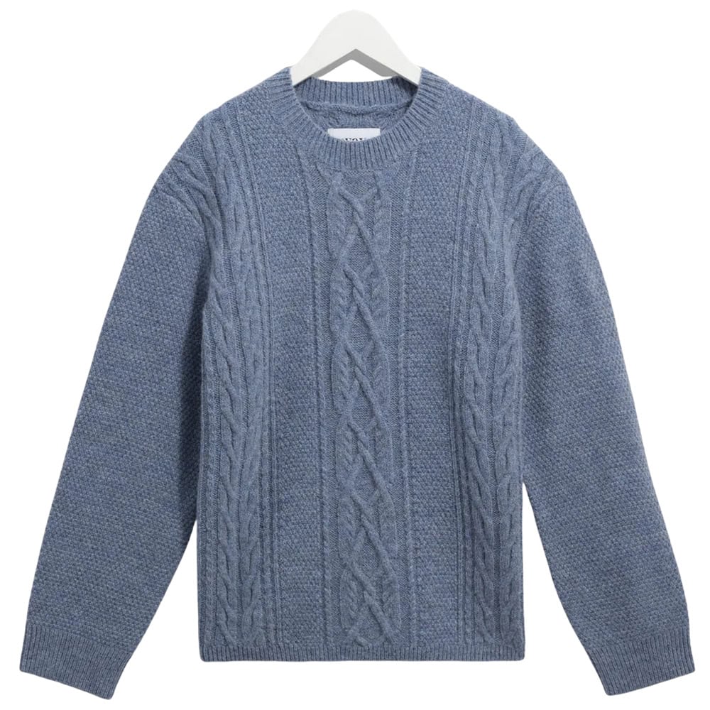 - Wax London Hyatt – Light Blue Brush Cable Knit Crewneck Jumper