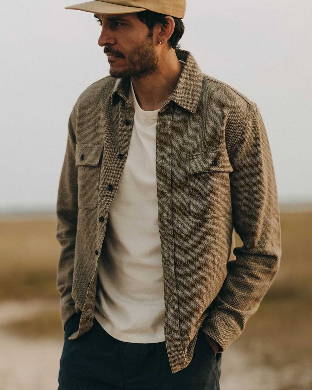 Here’s one for the office. A weather-ready combination that can tackle everything from extreme cold to client meetings without missing a beat. Whether you’re wearing all three at once, just the knit and shirt or the shirt on its own, every layer you peel back reveals a look that works on its own, and that’s why we love it.