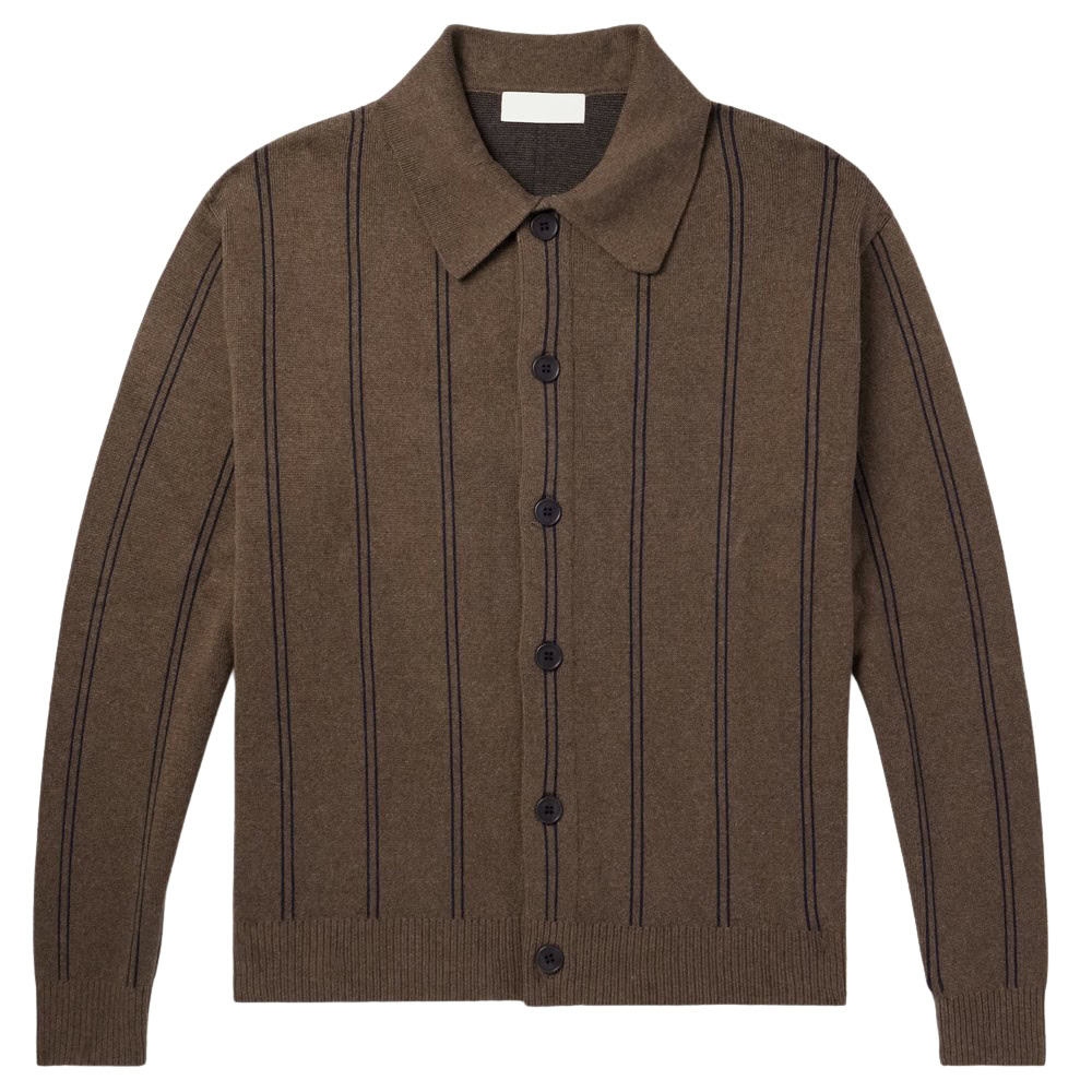 - Mfpen Striped Jacquard-Knit Cotton Cardigan