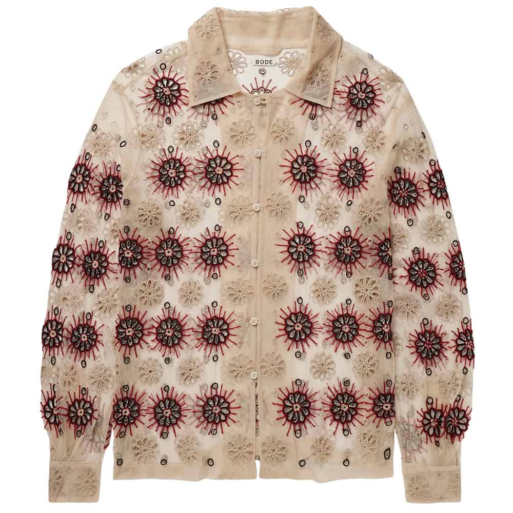 - Bode Solarium Bead-Embellished Broderie Anglaise Tulle Shirt