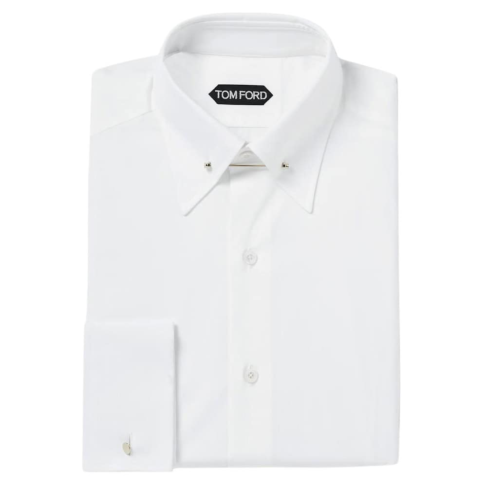 - Tom Ford White Slim-Fit Pinned-Collar Double-Cuff Cotton-Poplin Shirt