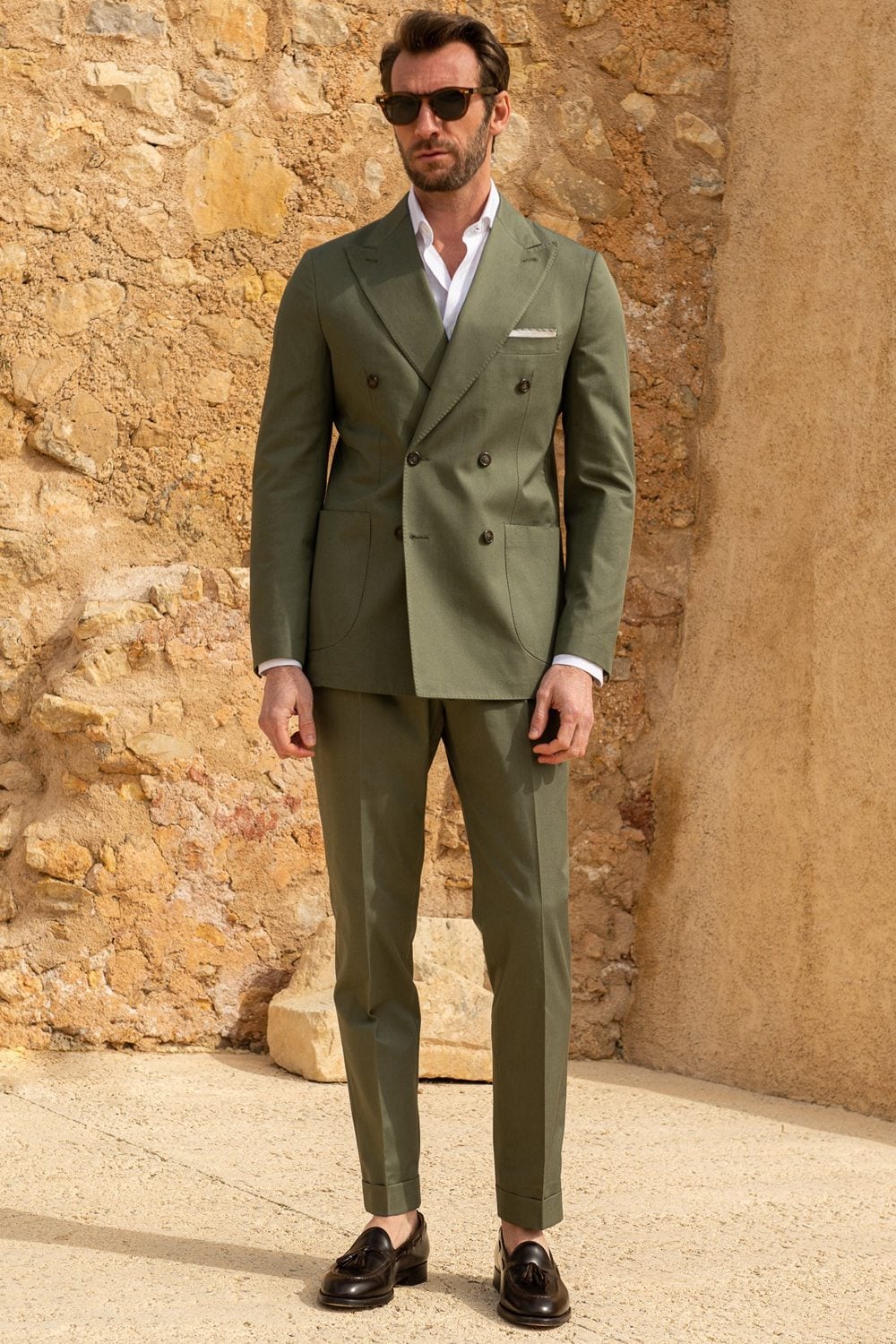 Dressing a suit down means using things like fabric choice, structure (or lack thereof), colour, texture and contemporary pieces to reduce the overall level of formality. It’s all about mixing in casual elements to offset the suit’s signature smartness, allowing it to blend in naturally in more relaxed environments.