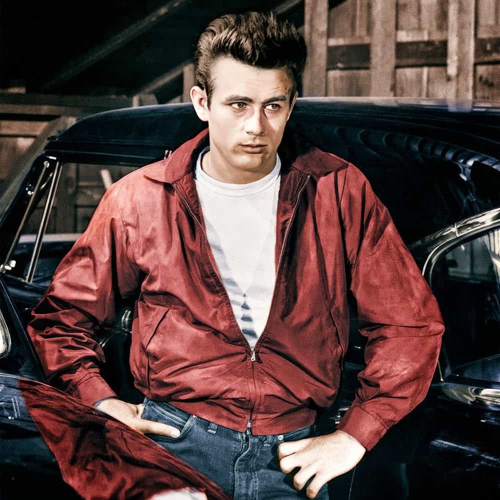 James Dean’s red Harrington jacket in Rebel Without a Cause epitomises 1950s rebellion. Its lightweight build, cropped silhouette, and bold colour turned it into a mid-century icon alongside Brando’s leather jacket.