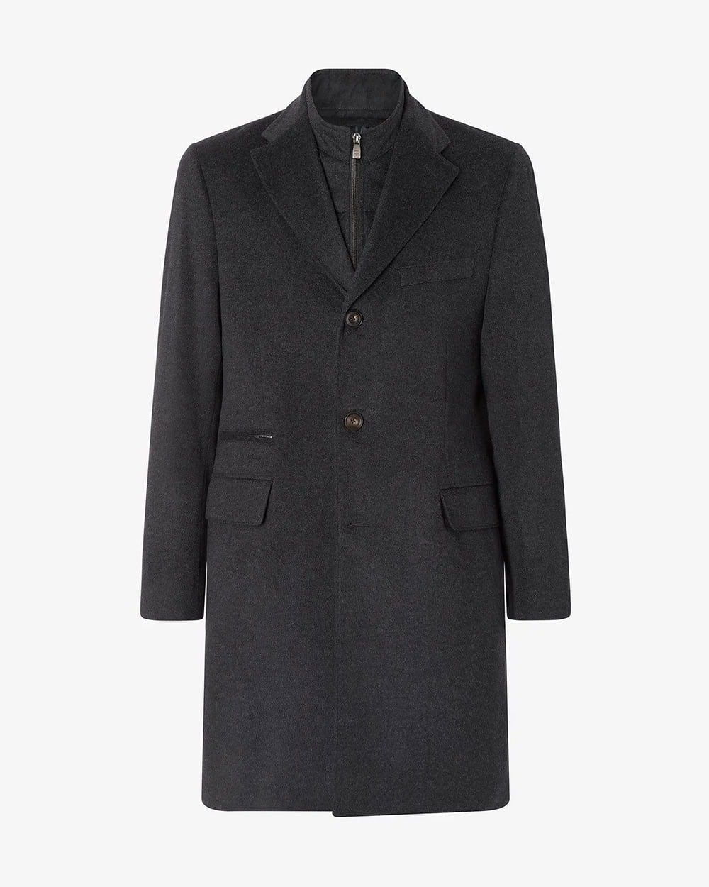 - Anthracite grey stretch cashmere wool cover jacket with detachable vest