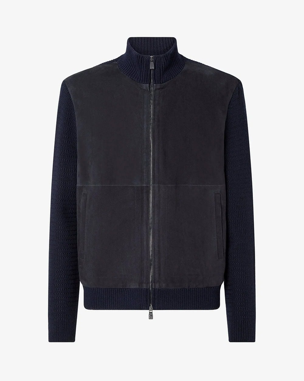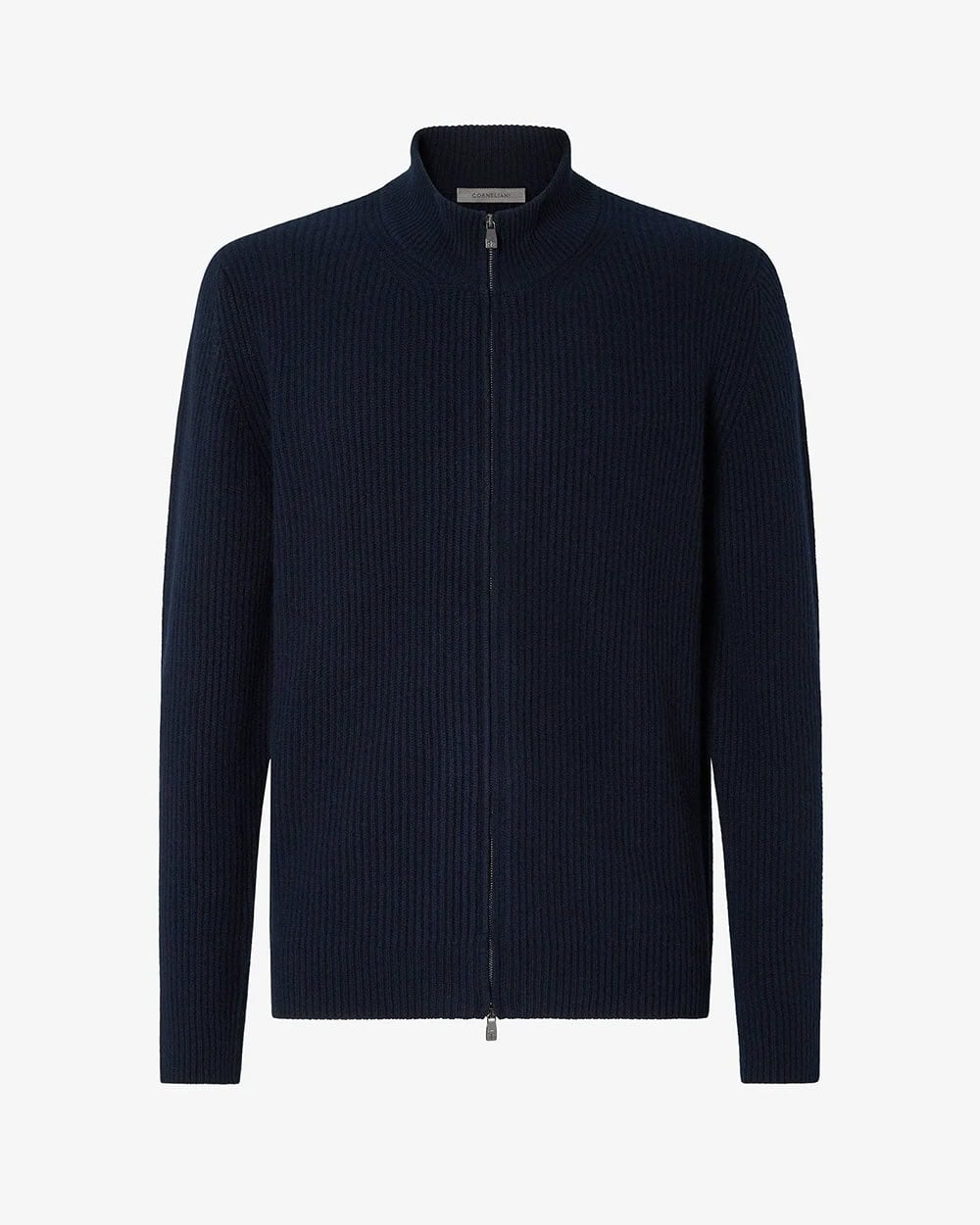 The Italian versions are particularly good because the fabrics do most of the talking. Cashmere blends with incredible softness; extra-fine wool that regulates temperature without feeling heavy; two-tone knits that add depth under outerwear. Corneliani’s FW25 examples highlight this mix beautifully, with clean lines, subtle ribbing and zips that sit flat against the body.