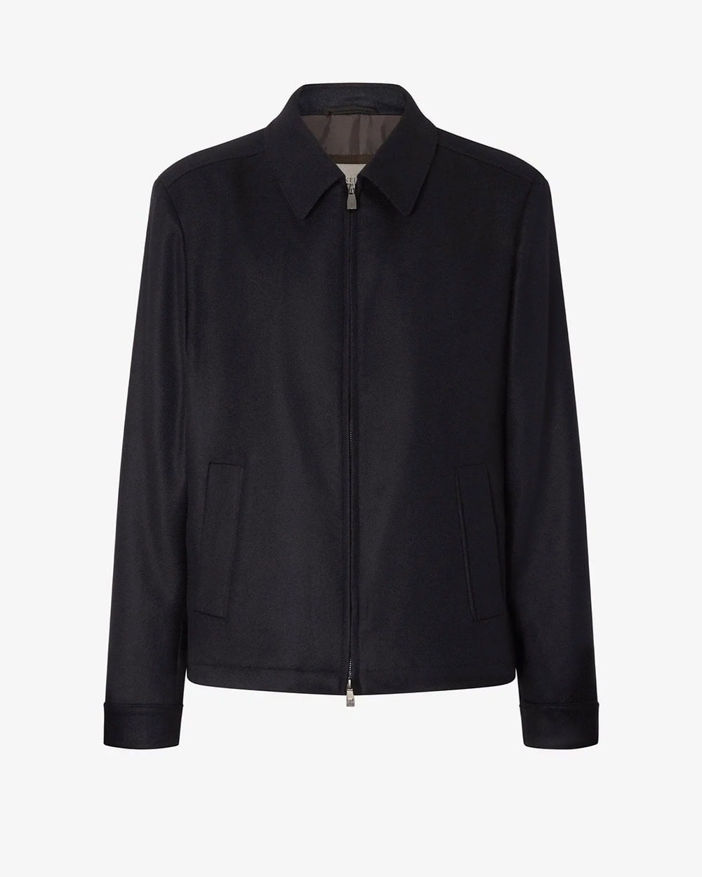 The appeal lies in the balance of structure and softness. Think technical fabrics blended with cashmere for warmth without bulk; reversible nappa leather that offers two moods in a single garment; unlined double-fabric constructions that sit neatly over shirts but also pair naturally with knitwear. Corneliani’s FW25 take on the cropped silhouette captures exactly this: considered materials, clean lines, subtle refinement.