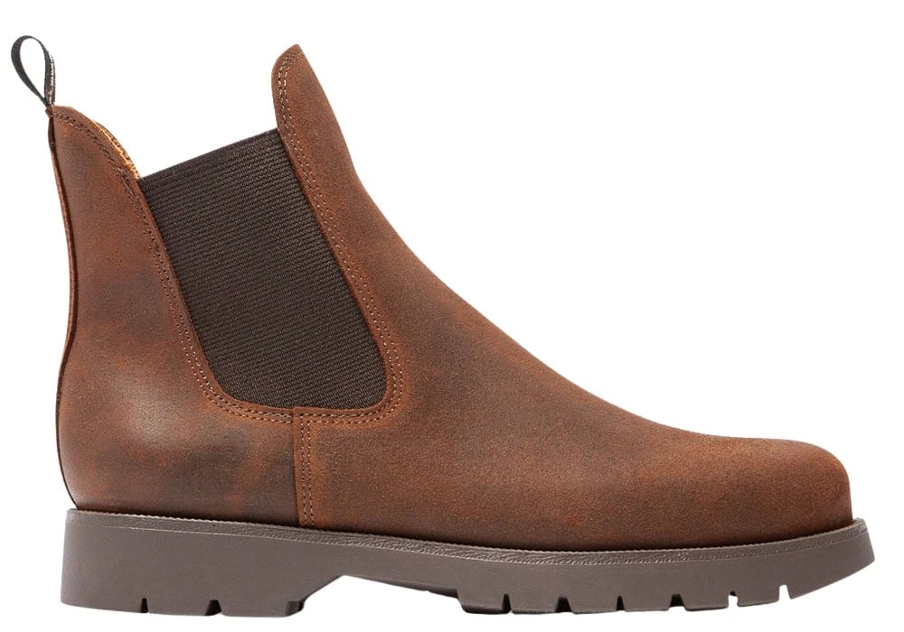 Thanks to the single-piece uppers and laceless design, Chelsea boots are excellent in inclement weather. Even better if they’re mounted atop a big, bulky commando sole to grip the ground when it gets wet and slippery.