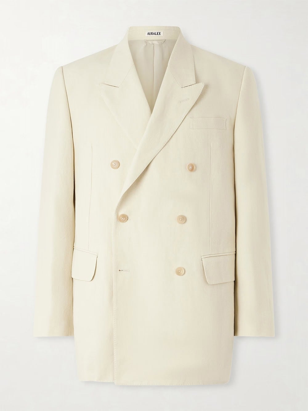 - Auralee Double-Breasted Wool, Cotton And Linen-Blend Oxford Blazer