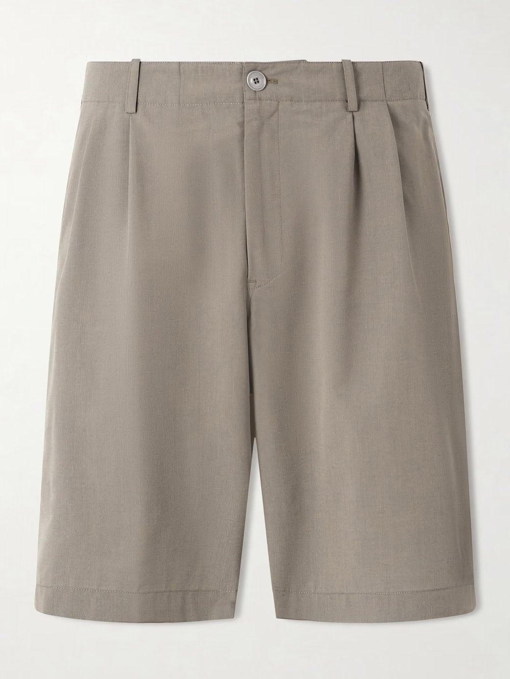 - Our Legacy Ponte Wide-Leg Pleated Virgin Wool and Cotton-Blend Shorts