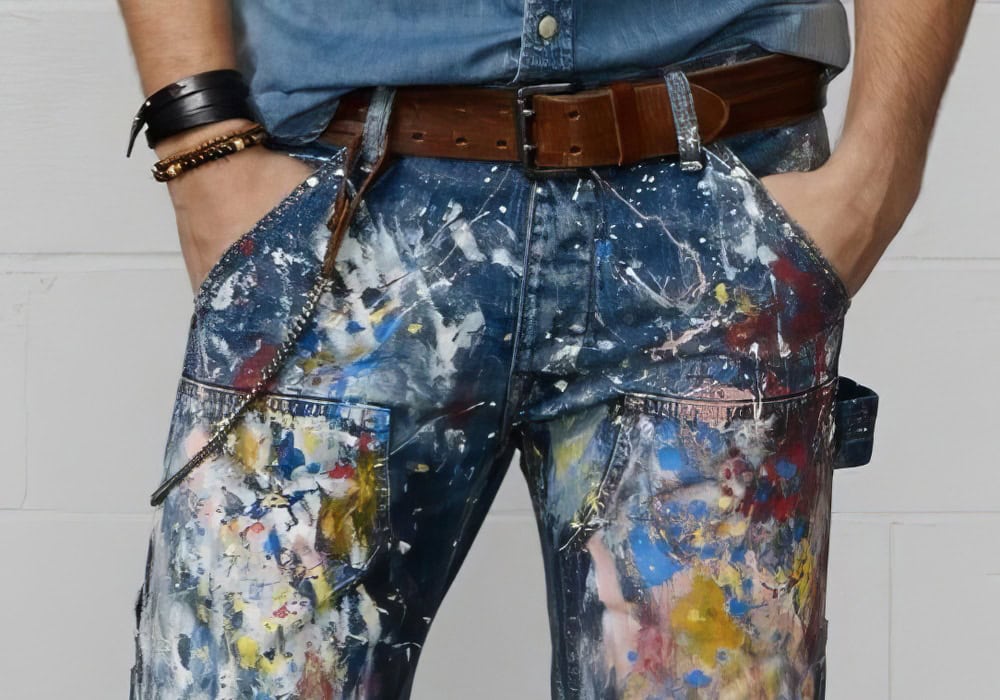 Jeans with faux paint splashes, random scribbles or chaotic patchwork detailing feel gimmicky. Denim works because it’s democratic and durable. Once it starts cosplaying as an art project, it loses the plot.