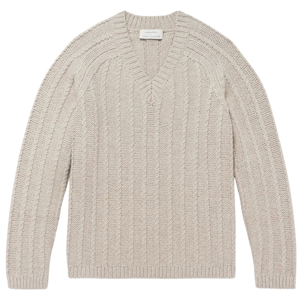 - Studio Nicholson + Aaron Levine Sussex Cable-Knit Virgin Wool Sweater