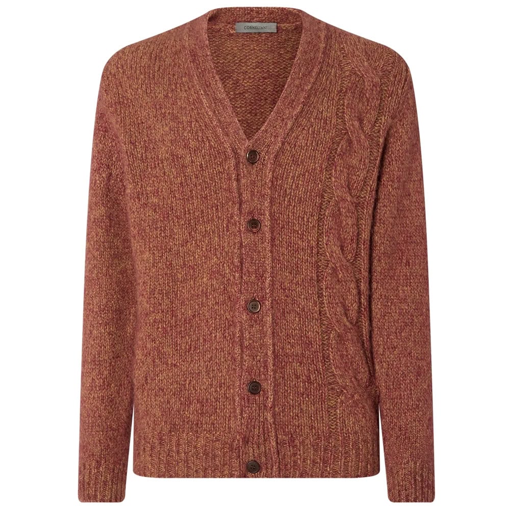 - Corneliani Magenta Ad camel Superfine Merino Wool Cardigan