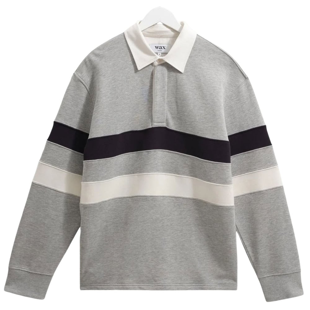 - Wax London Rowhill – Grey Marl Stripe Panelled Loopback Rugby Shirt