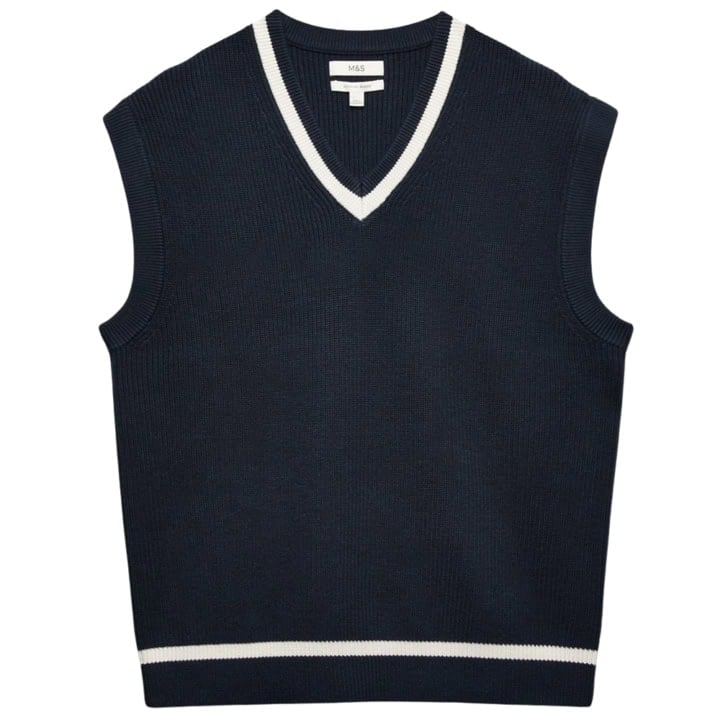 - M&S Cotton Blend Tipped V-Neck Knitted Vest