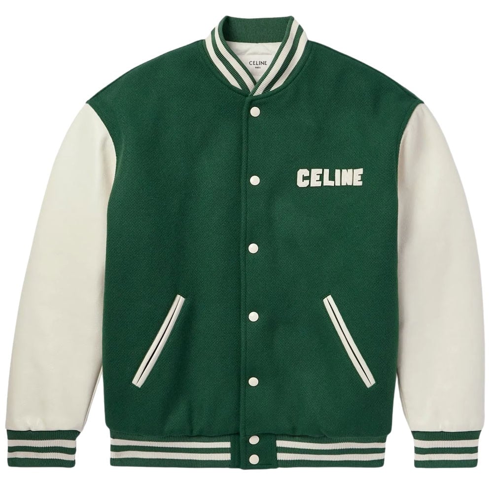 - CELINE Teddy Logo-Appliquéd Wool-Blend and Leather Varsity Jacket