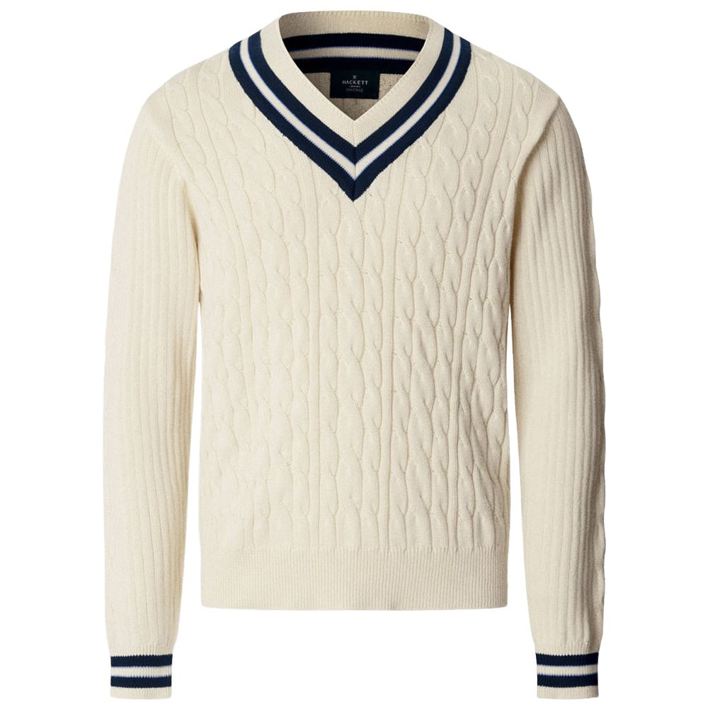 - Hackett Cricket Cable Knit V-neck Jumper
