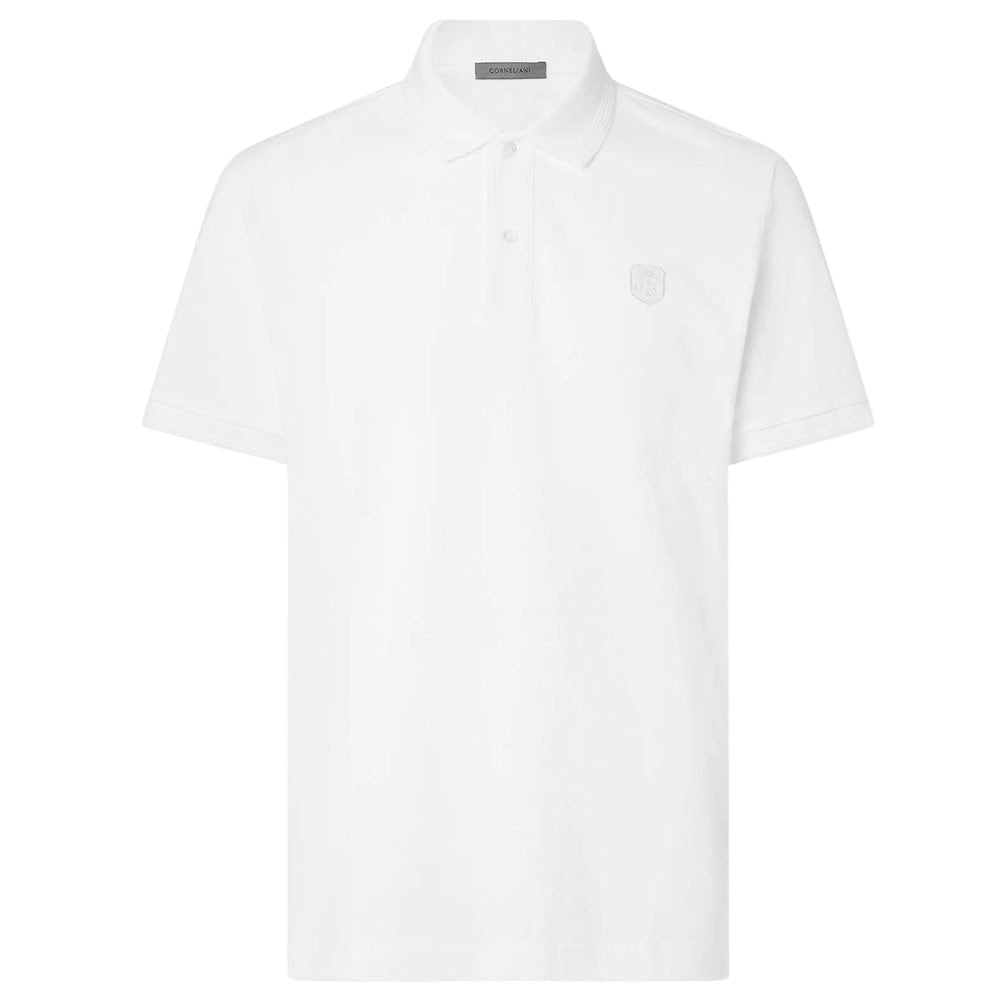 - Corneliani White Button-up Cotton Pique Polo Shirt