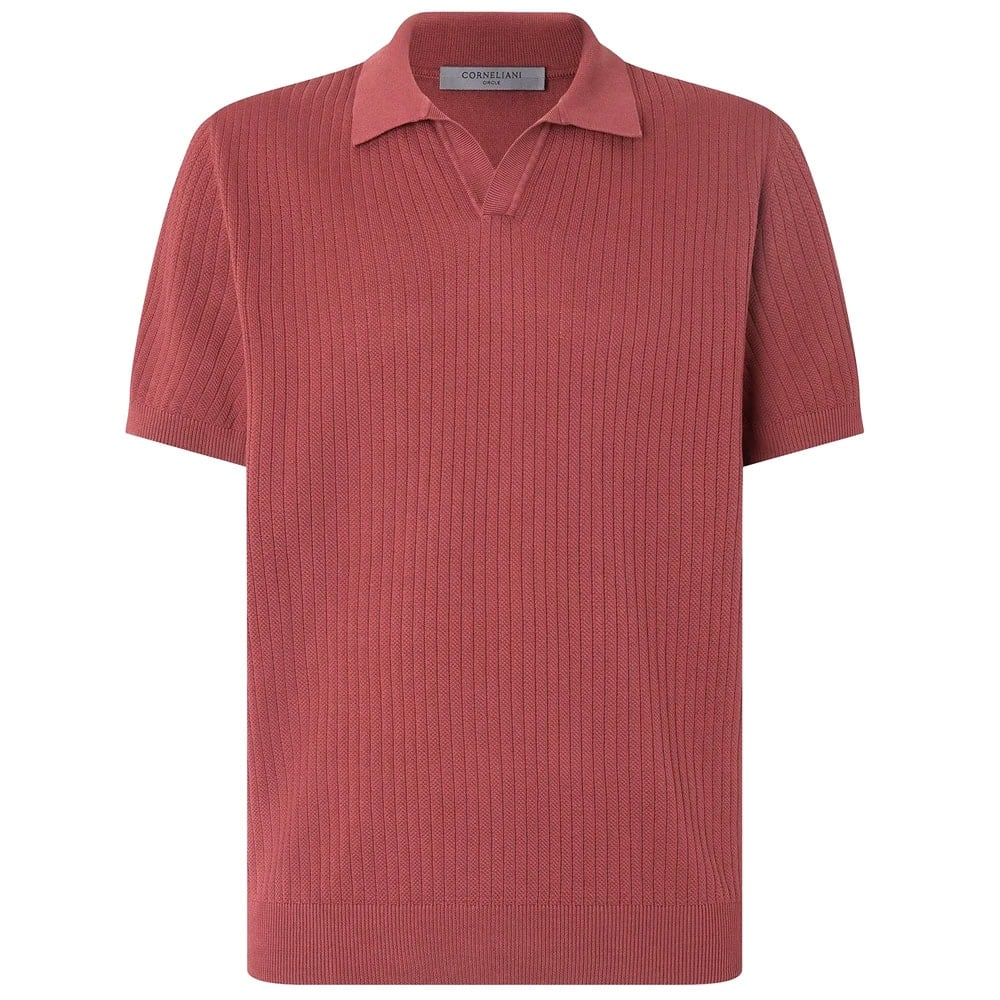 - Corneliani Burgundy Buttonless Pima Cotton Polo Shirt