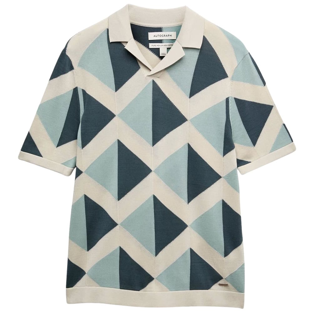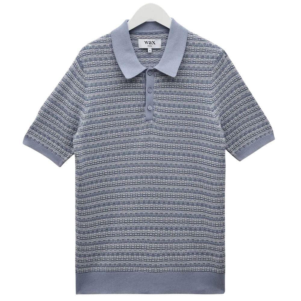- Wax London Naples – Light Blue Mini Geometric Knitted Polo