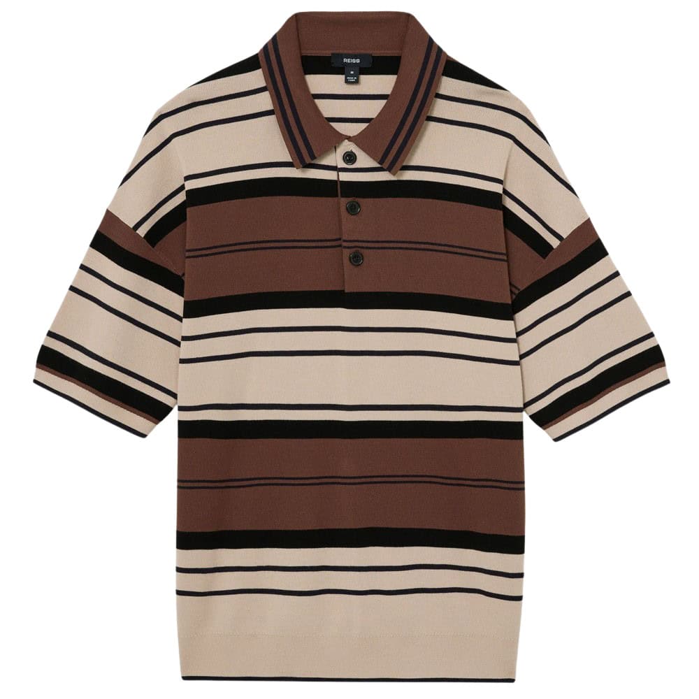 - Reiss Abbot Stripe Knit Half-Button Polo Shirt