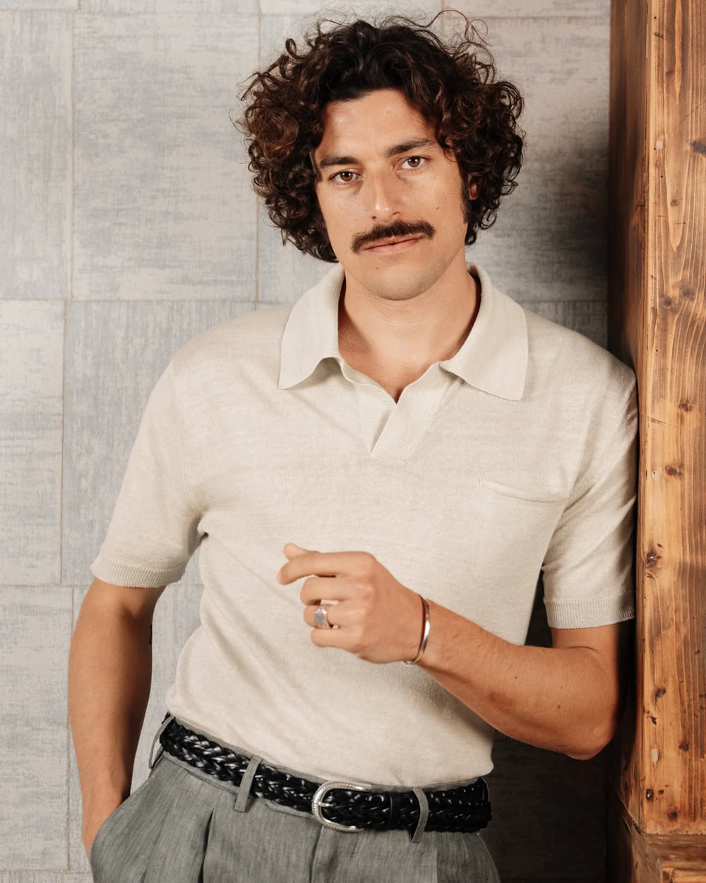 - Wax London Atwood – Clay Textured Organic Cotton Polo Shirt