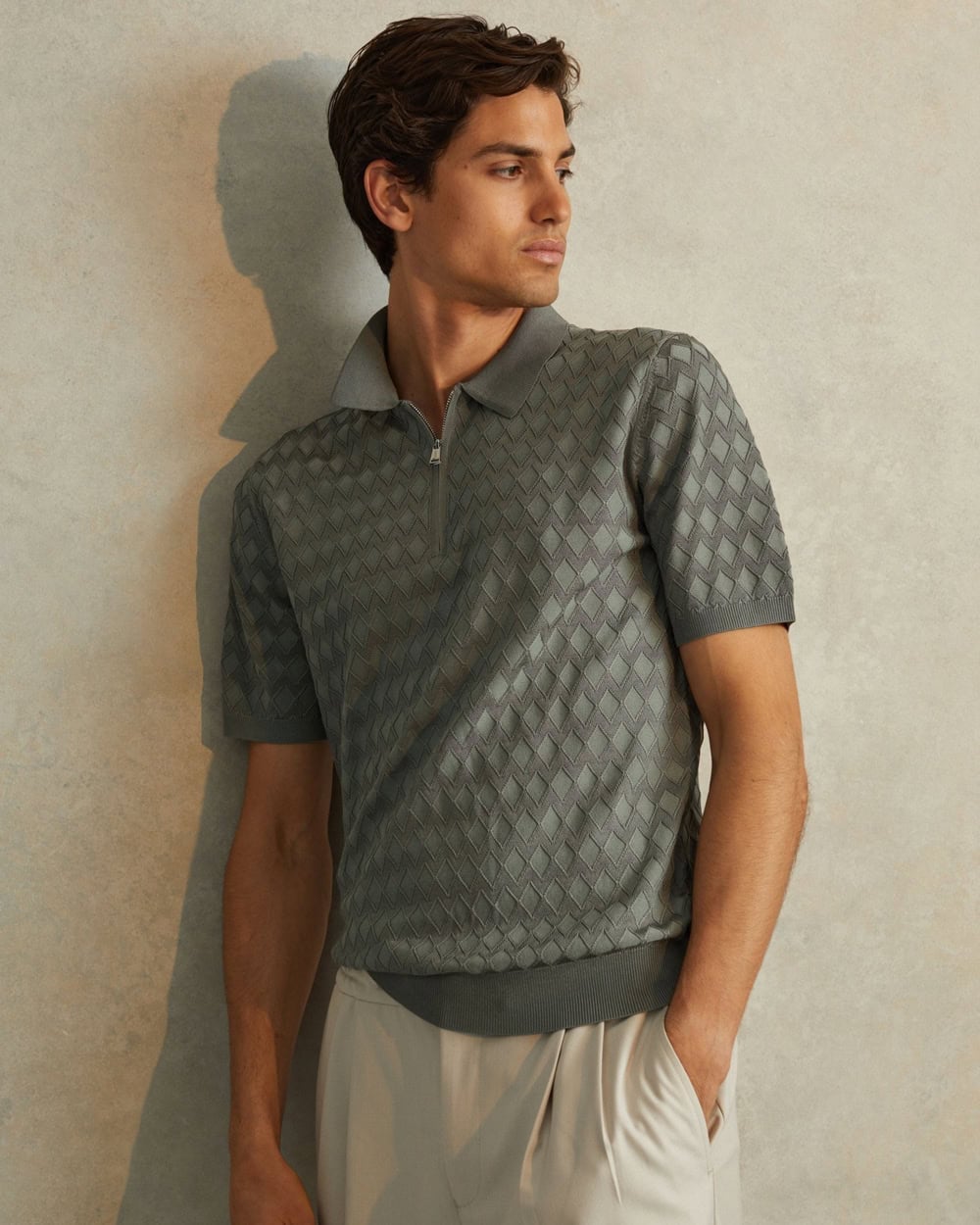 - Reiss Estate Textured-Knit Half-Zip Polo Shirt