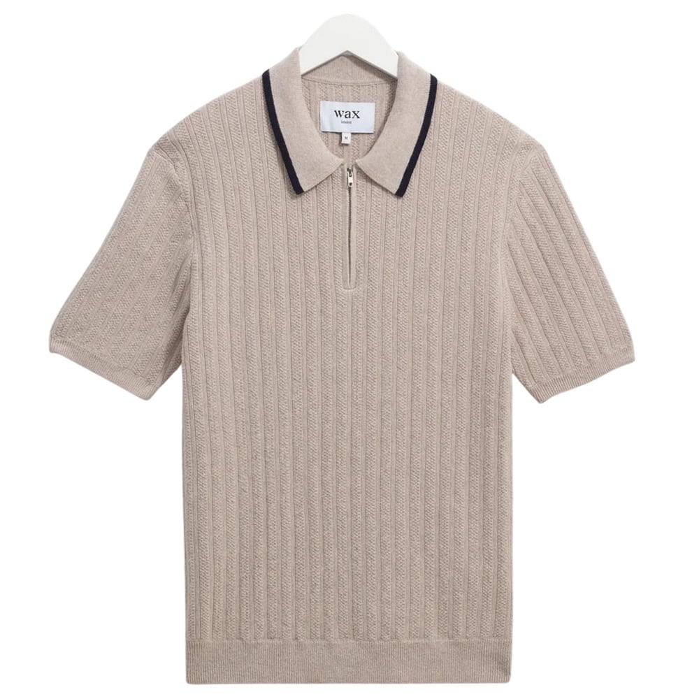 - Wax London Bury – Natural Melange Stripe Zip Polo