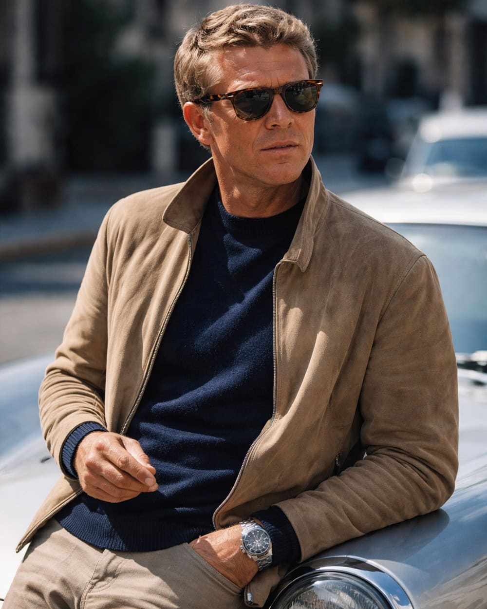 Once you’ve found your colour, use it consistently. It might show up in knitwear, outerwear, socks, scarves or even watch straps. It doesn’t need to dominate your outfit. In fact, subtle repetition works best.