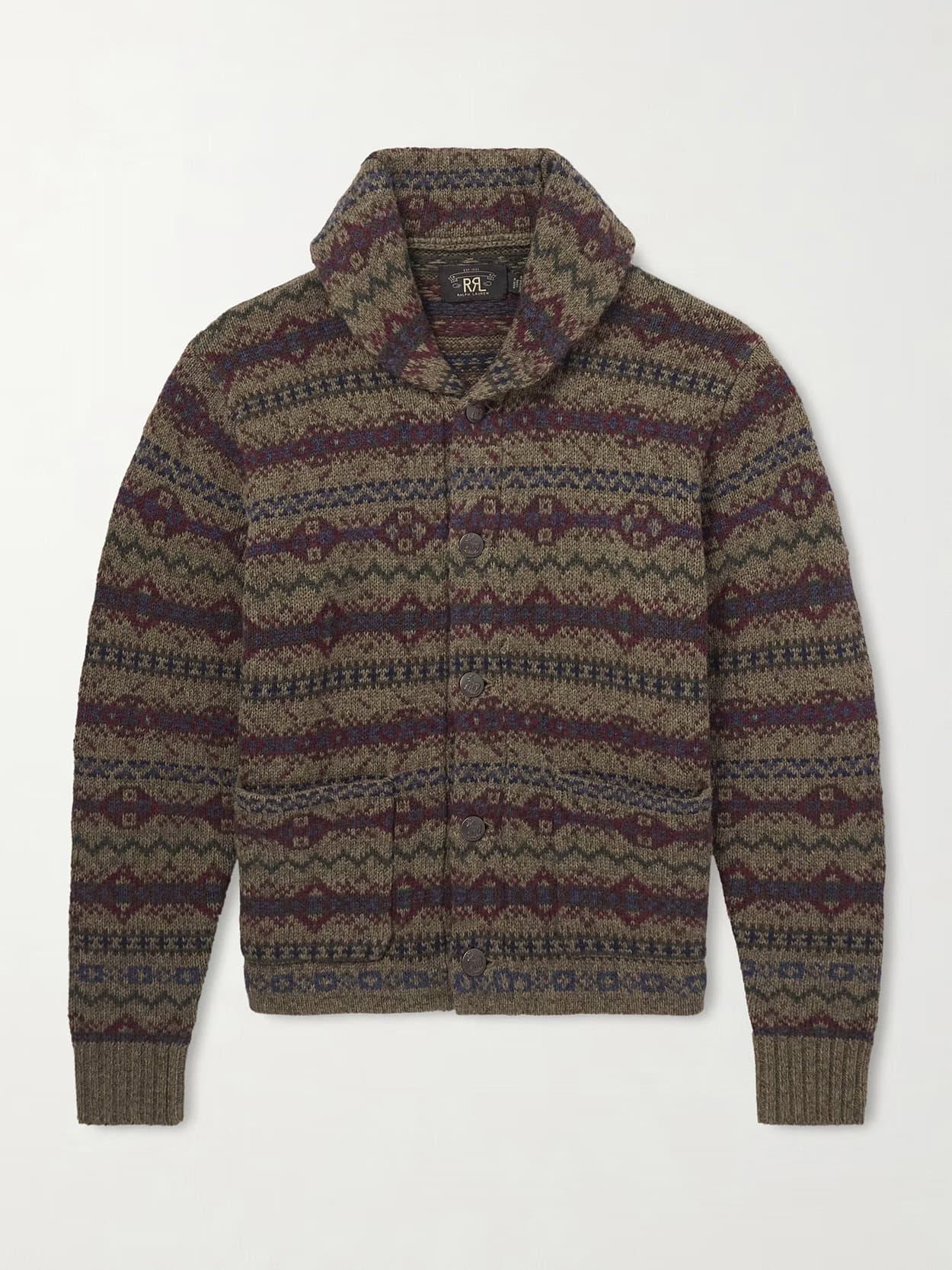 - RRL Shawl-Collar Fair Isle Wool Cardigan